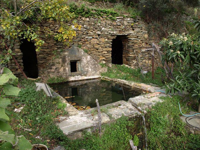 L'eau de cette fontaine est canalisée dans deux petits réduits, voûtés en tas de charge, ménagés dans le mur soutenant un ancien chemin. Elle s'écoule dans un bassin de décantation, couvert d'une voûte en berceau, aménagé dans ce même mur, puis se déverse dans un grand bassin extérieur. L'eau se jette enfin dans un troisième bassin, plus petit, aménagé au ras du sol. Les murs de ces différents aménagements sont constitués d'un appareil mixte de moellons et de pierres (les murs des trois bassins sont également enduits à la chaux). La parcelle alimentée en eau par cette fontaine est plantée d'une vigne et d'un jardin potager.