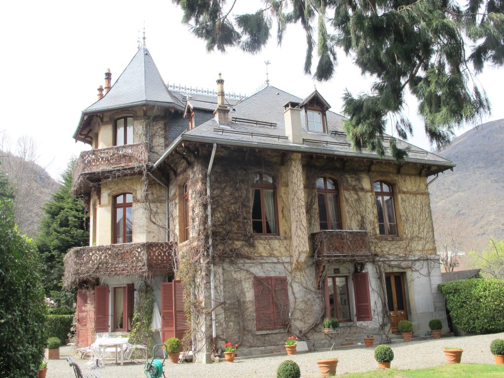 La villa est construite en retrait du boulevard Edmond Rostand, entourée par un jardin qui se déploie vers l'est. Il est planté notamment d'un séquoia géant qui fait écho à ceux du parc du casino. La maison est orientée avec une exposition nord/sud qui est singulière par rapport aux autres villas du quartier de la Pique. Son corps principal, de plan rectangulaire, est couvert par une toiture à longs pans et croupes percées de lucarnes. Il est complété par un avant-corps sur deux étages à cinq pans, placé au sud, au milieu de la façade et couvert par une toiture à plusieurs pans à égouts retroussés. L'arrivée des toitures est supportée par des chevrons débordants et masquée par des lambrequins en bois. L'ensemble est construit en maçonnerie enduite, l'étage étant recouvert d'un essentage de planches en pitchpin d'après J. Caussette (op. cité, p. 101). Les élévations est et ouest sont identiques, avec trois travées et porte d'accès à la demeure. Les baies sont de forme rectangulaire au rez-de-chaussée et en arc segmentaire à l'étage : les premières ont un encadrement en pierre de taille, les secondes en bois. Un cordon mouluré en bois ceinture l'édifice à l'étage et contourne chacune des fenêtres ; la baie centrale des élévations est et ouest est dotée d'un balcon saillant en bois découpé qui fait écho aux deux grands balcons filants qui contournent l'avant-corps et invitent à la contemplation des Pyrénées.£A l'intérieur, deux pièces côté boulevard servaient aux domestiques, en l'absence d'un niveau de soubassement. L'angle sud-ouest de la villa est occupé par un escalier tournant en bois monumental.