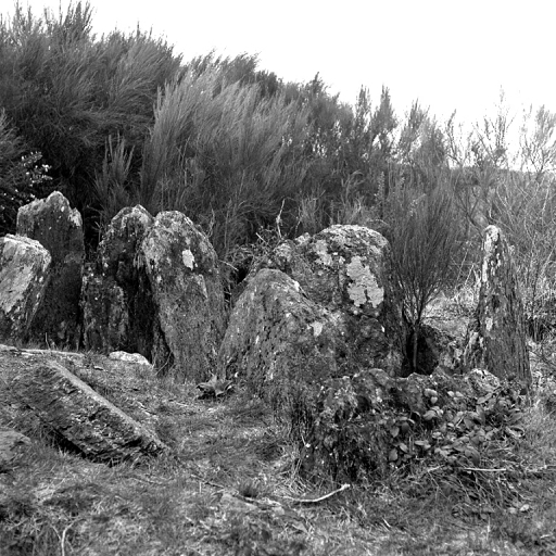 Sépulture collective néolithique entouré d'un cairn -enfoui- en dalles de schiste daté de 3500 à 2500 avant Jésus Christ.