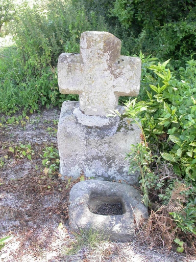 Cette croix est ornée d'une croix templière ; elle n'est vraisemblablement pas à son emplacement d'origine, peut-être vient-elle de la paroisse de Vildé-Bidon (commune de Roz-Landrieux), qui a appartenu à l'Ordre des Templiers. Une pierre creuse, qui évoque un bénitier, se trouve devant la croix.