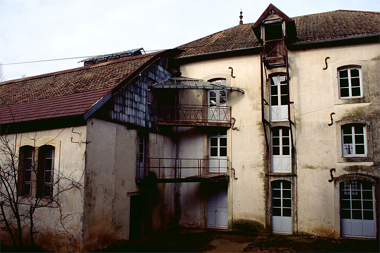 Logement patronal : moellons calcaires enduits, étage de soubassement, rez-de-chaussée surélevé, étage carré, étage de comble, toit à longs pans brisés et demi-croupes. Entrepôt industriel : pan de bois hourdé de briques de mâchefer, toit à longs pans. Atelier de fabrication : moellons calcaires, enduit, étage de soubassement, 2 étages carrés et étage en surcroît, toit à demi-croupes et tuiles mécaniques.