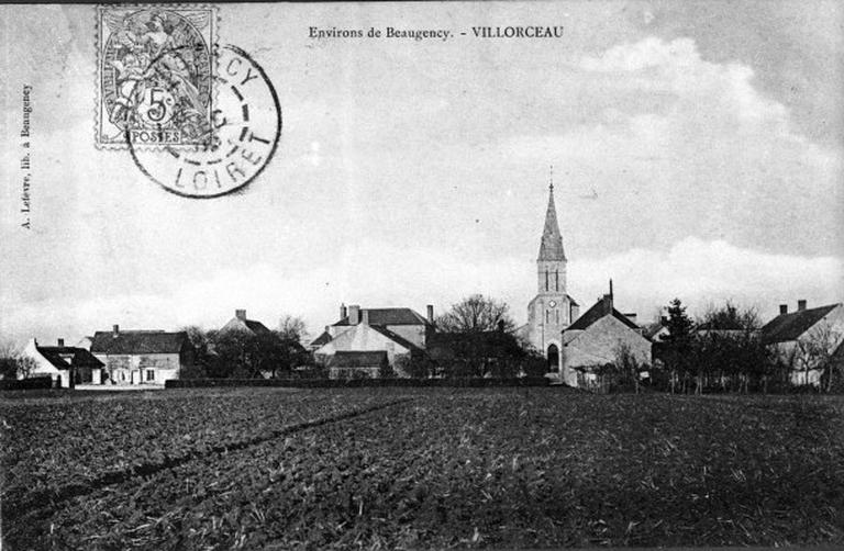 La comparaison des limites du territoire de Beaugency à la fin du XVIIIe siècle et la limite sud-est actuelle de la commune de Villorceau, permettent de préciser qu'une petite partie du territoire de Beaugency à été distraite au bénéfice de Villorceau, sans doute durant la Révolution. Ensuite, en vertu des dispositions de la loi du 19 juillet 1845, les hameaux de Villevert et de Villemarceau ont été détachés de Cravant (sections G, H, et I du plan d'assemblage napoléonien de 1827) et une partie de celui de Loynes et le lieudit les Grottes (sections E et F du plan d'assemblage) l'ont été de celui de Tavers pour agrandir à nouveau la commune (planche II). Villorceau s'étendait donc sur un territoire particulièrement étroit durant l'Ancien Régime. Actuellement, le village, qui s'étire de part et d'autre de la mairie et de l'église, le long de la route départementale 919, n'était pas construit avant 1827. Seuls les écarts de Monthenolle, les Grand et Petit Bonnevalet, Loynes, la Bordière et le Mée l'étaient. L'ancienne église était édifiée dans le cimetière près du lieudit l'Aumône hors de toute agglomération. Il n'y avait donc pas de centre proprement dit. L'édification de la mairie en 1853 au bord de l'actuelle RD 919 et, en 1860, de la nouvelle église, presque en face, au sud du lieudit Monthenolle, après la destruction de l'ancienne (voir IA45000093) , modifièrent le centre de gravité de la commune. Le village s'est vraisemblablement agrandi autour des deux nouvelles constructions emblématiques de la commune afin de créer une liaison avec Monthenolle et Bonnevalet, à moins que ce ne soit l'inverse, de nouvelles fermes et maisons en précédant l'édification.