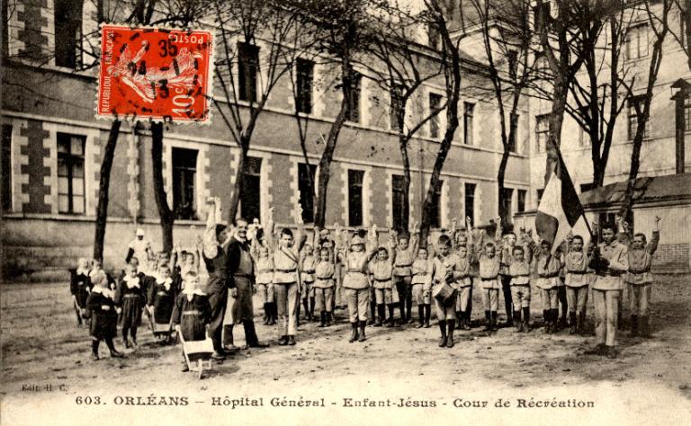 L'adjudication des travaux à effectuer pour construire "une salle annexe à l'hôpital destinée aux enfants assistés" eut lieu le 19 juillet 1890. Il était prévu de démolir et refaire l'extrémité occidentale du grand bâtiment de l'hôpital général et d'établir une grille sur le boulevard des Anges. Le nouveau pavillon formerait alors un long avant-corps du grand bâtiment et comporterait trois niveaux dont un étage de combles. Il fut inauguré en 1891 pour loger les jeunes garçons orphelins (salle de l'Enfant Jésus).Par son testament daté du 11 décembre 1929, Charles Jules Ernest Roux fit des Hospices civils d'Orléans ses légataires universels ; le legs fut accepté le 11 août 1930. En 1934, la pension fut réaménagée et transformée en pension pour personnes âgées et prit le nom de pension Roux. Elle fut désaffectée au milieu des années 1970.