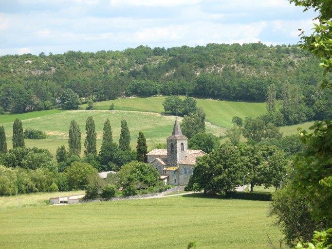 La plus ancienne mention connue de l'église semble être de 1345, lorsqu'elle est donnée au chapelain du cardinal Jean de Via (Clary, 1986). Il semble que l'édifice ait été entièrement reconstruit après la guerre de Cent ans : on sait qu'une cloche est fondue par Pierre Rahard, d'Aurillac, en 1470 (J. Lartigaut, 2000), mais sa fabrication traduit-elle un début d'aisance ou bien marque-t-elle l'achèvement de la reconstruction ? L'édifice actuel doit sans doute beaucoup aux réparations et agrandissements du 19e siècle, auquel doivent être attribuées les voûtes et probablement les deux chapelles nord et sud.