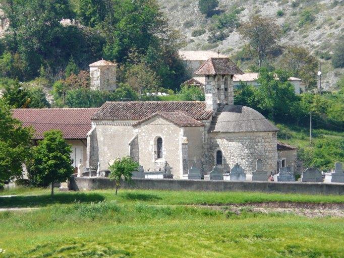 L'édifice se compose d'une nef unique, de deux chapelles latérales et d'une abside semi-circulaire ; un clocher-mur s'élève à la jonction de la nef et de l'abside. La maçonnerie de celle-ci est faite de pierres de taille en remploi et de moellon ; sa couverture de lauzes a été remplacée par une chape de ciment. Les élévations extérieures de la nef sont enduites. Le portail, disposé au sud, est couvert par un arc au tracé brisé segmentaire ; sa mouluration un peu sèche retombe sur des bases prismatiques de même facture.