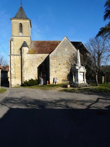 De l'église romane sont peut-être conservés une partie des murs de la nef (parement extérieur du mur gouttereau nord visible près de la chapelle latérale) et le chevet, bâtis en pierre de taille de calcaire. Les parements d'origine sont caractérisés par un appareil très soigné à assises réglées de hauteurs variables et à joints très fins.£L'édifice, dans son état initial, comportait une nef unique et un choeur à abside semi-circulaire voûtée en cul de four, précédée par une travée droite couverte en berceau brisé. L'arc doubleau, séparant la travée de choeur de l'abside, ainsi que l'arc triomphal à double rouleau sont brisés. Le chevet était couronné par une corniche portée par des modillons dont ne subsistent plus que les pierres bûchées. Il a été surélevé à une époque indéterminée, avec une partie polygonale bâtie au-dessus de l'abside.£Les vestiges de pilastres engagés dans les murs latéraux de la nef sont visibles à l'entrée du choeur, jouxtant ceux qui reçoivent l'arc triomphal : appartenant au premier état de la nef, ils pourraient signaler la présence d'arcs d'applique sur les élévations latérales. Ce dispositif, observé dans plusieurs églises rurales à nef unique datant de la même période, pose la question de la présence d'une travée d'avant-choeur surmontée d'une tour-clocher.£Au nord et au sud de cette travée ont été greffées les deux chapelles latérales. Résultant de deux campagnes de construction successives, elles diffèrent par leurs dimensions et leurs maçonneries. La chapelle nord, plus ancienne, présente un appareil réglé mais elle se démarque par la présence de remplois taillés, provenant peut-être des maçonneries détruites de la nef, mêlés à des éléments équarris de tailles variables et à de nombreuses cales. Le mur nord est flanqué de deux contreforts entre lesquels est percée une porte piétonne chanfreinée couverte d'un arc brisé mal extradossé (bouchée). Les parements extérieurs révèlent d'importantes traces de reprise, notamment liées au percement de la baie du deuxième niveau, ainsi qu'une surélévation plus récente en pignon. La voûte d'ogive de la chapelle est dotée de nervures à tore entre deux gorges.£Les maçonneries de la chapelle sud sont bien moins régulières et les pierres de taille semblent être également en remploi ; elle est couverte d'une croisée d'ogives dont les nervures sont à un listel entre deux cavets.