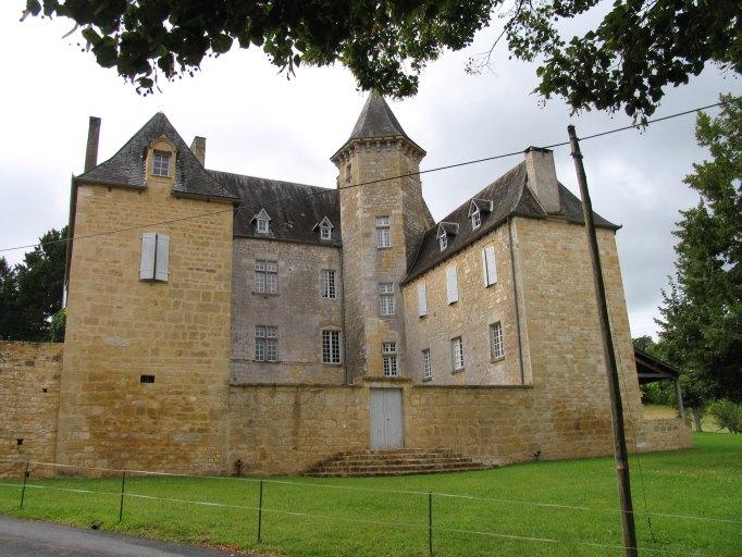 Le château est précédé au sud par une longue cour bordée par deux bâtiments de communs, à un seul niveau, couverts de tuiles plates. La façade principale de l'édifice est cependant au nord, du côté de l'église, donnant sur une petite cour fermée par des ailes en retour d'équerre et un mur de clôture ; une tour d'escalier polygonale est placée à l'angle du corps principal et de l'aile ouest.£Les vestiges d'une construction du 13e ou du 14e siècle se trouvent uniquement aux deux premiers niveaux dans le corps principal : pierre de taille et porte à l'étage couverte d'un arc brisé dans l'élévation ouest, pierre de taille et cordon interrompu par les fenêtres dans l'élévation nord. La reconstruction du milieu du 16e siècle se caractérise par des fenêtres à croisées seulement chanfreinées dont les appuis saillants sont coupés en biais et des bouches à feu à ébrasement rectangulaire à ressauts ; la porte de la tour d'escalier, à larmier en accolade (surmontée d'une tête à coiffure Renaissance, précise H. Viers) fait figure d'archaïsme à cette date-là. D'autres éléments sont difficiles à rattacher à un état précis sans une étude des bâtiments : tête de mur appareillée en haut de l'élévation nord du corps principal, près de l'angle nord-ouest, pignons découverts intermédiaires, dont un à crochets, du corps principal, corbeaux en quart de rond en partie haute de l'extrémité ouest de l'élévation sud.£La lucarne de toit de l'aile est, du 17e siècle, est à fronton curviligne ; H. Viers signalait dans cette aile la présence d'une petite chapelle à "voûtes nervurées", et dans l'aile ouest des cuisines, indiquant encore que l'étage de soubassement du corps principal et de l'aile est était constitué de grandes salles voûtées avec meurtrières en forme de croix du côté de la cour (1961, p. 207, 208). La porte de l'élévation sud, à moulures grasses, est surmontée d'un entablement sur lequel est placé un écu où l'on voyait encore en 1961 les traces des armoiries peintes des du Pouget (H. Viers, 1961, p. 207).
