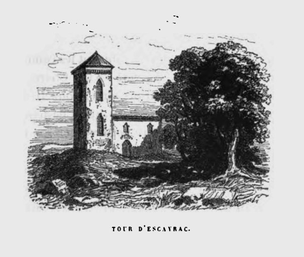 Le fief d'Escayrac ou de Saint-Aureil, qu'il ne faut pas confondre avec le château d'Escayrac sur la commune de Lascabanes, est à l'origine du nom d'une famille de chevaliers dont trois membres participèrent à la croisade de 1249 ; en 1273, ce sont Bernard, Armand et Guiscard d'Escayrac qui habitent dans leur fief d'Escayrac (C. Didon, 1996). Un document de 1474 mentionne en confront une "turrim fortalicii" à Escayrac, mais s'agit-il de celui de la paroisse de Saint-Aureil, puisque F. Hautefeuille (1998) le situe près de Lamoleyrette ? En 1504, noble Raymond d'Escayrac possède la "maison" d'Escayrac avec métairie et vignes (L. d'Alauzier, 1984). La carte de Cassini, dans la seconde moitié du 18e siècle, ne mentionne plus qu'une simple métairie. Vendue à la Révolution, la demeure est mise en métayage puis abandonnée, avant d'être démolie vers 1934 et reconstruite en remployant les matériaux (C. Didon, 1996). L'édifice médiéval n'est connu que par une vignette publiée par J.-B. Gluck en 1852 : le dessin représente une construction qui serait datable du 13e ou du 14e siècle.