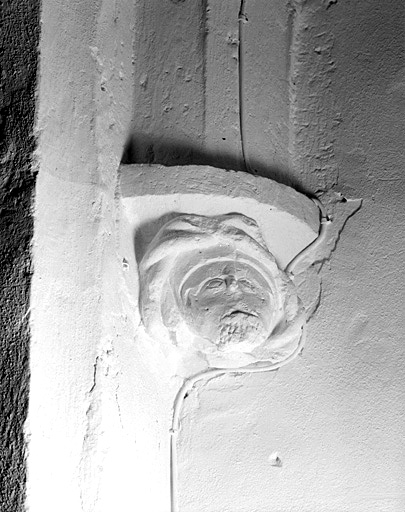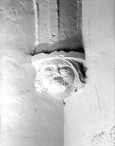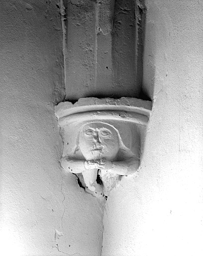 sujet : tête d'homme, tête de guerrier, christ en croix, motif géométrique, support : chapiteau 2e arc de la nef depuis l'ouest ; sujet : serpent, support : chapiteau de la colonne nord du 3e arc depuis l'ouest ; sujet : animal fantastique, support : chapiteau 3e arc depuis l'ouest ; sujet : personnages profanes à mi-corps en prière, tête d'homme, tête de femme, support : 4 culots de la chapelle nord ; sujet : I. H. S., croix, torsade, étoile, support : clés de voûte du choeur