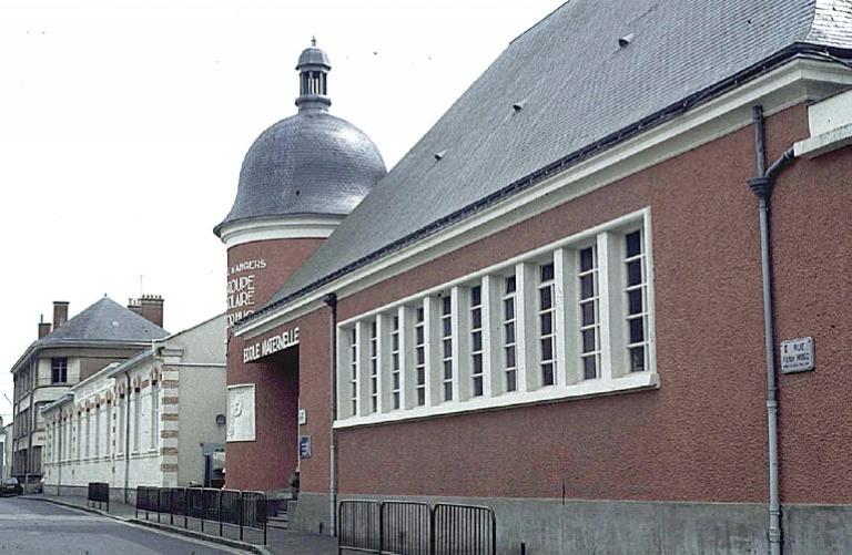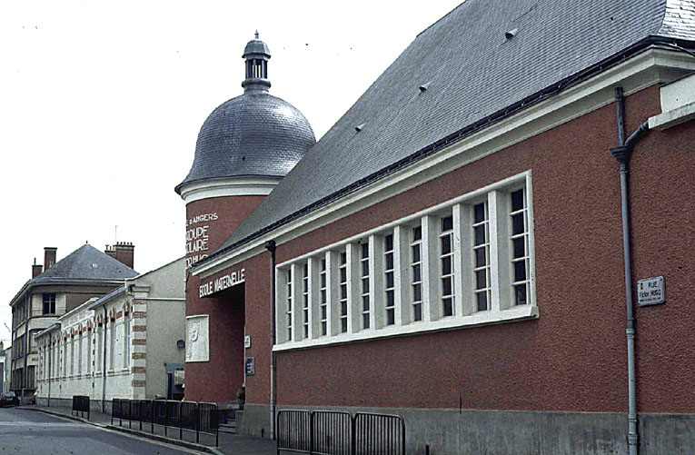 Ecole maternelle et primaire Victor-Hugo créée en 1880 - en même temps que la rue - en conséquence de l'urbanisation de ces quartiers de la Chalouère et Brisepotière à la fin du 19e siècle. Avec le développement du quartier du Lutin dans l'Entre-deux-guerres, deux agrandissements sont opérés, l'un par l'architecte Henri Jamard en 1934, vers l'est, correspondant à la bibliothèque et à des logements pour les instituteurs, l'autre à l'ouest, par l'architecte communal André Mornet en 1938 pour l'école maternelle (d'après casier sanitaire).