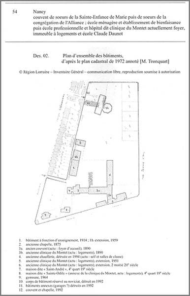 couvent de soeurs de la Sainte-Enfance de Marie puis de soeurs de l'Alliance ; école ménagère et établissement de bienfaisance, puis école professionnelle et hôpital dit clinique du Montet, actuellement foyer, immeuble à logements et école catholique de l'Alliance puis école Claude Daunot