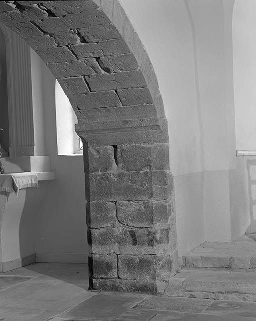 Edifice composé d'un clocher sur massif antérieur, d'une nef rectangulaire et d'un choeur, à abside en cul-de-four, ouvrant, à gauche sur une chapelle, à droite sur la sacristie. Voûte du choeur en pierre, celle de la nef en ciment, fausse voûte en lattis plâtré sur la chapelle. Flèche octogonale, à égout carré, couverte d'ardoise.