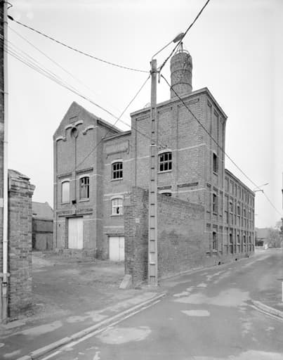 atelier de fabrication ; logement patronal ; cour ; écurie ; cheminée d'usine ; entrepôt commercial ; pièce de séchage ; germoir