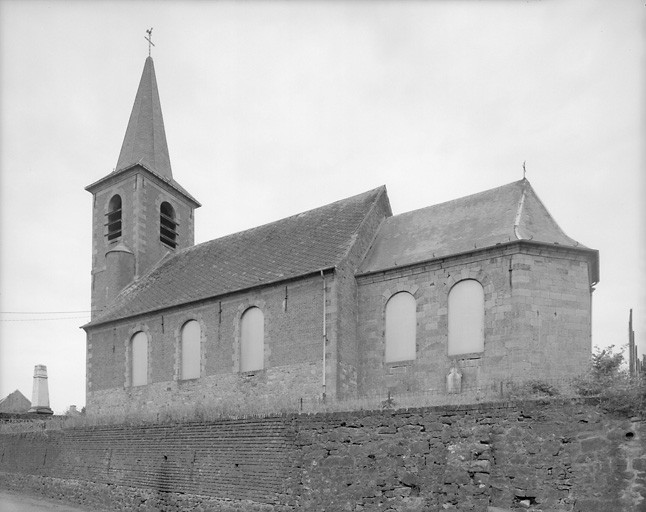 Eglise construite en 1782 (?). Rétrocession de l'église à la commune en 1805 par 4 habitants qui en avaient fait l'acquisition en l'an 8. Travaux de réparation de la toiture en 1812 (Lembourg architecte) puis en 1884, de la charpente en 1856 ( Fiévet J. architecte) , remplacement de la cloche en 1922.