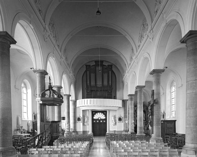 L'église a une nef à 3 vaisseaux et 5 travées, précédée d'une tour-porche, des bas-côtés à 6 travées, un faux-transept et une abside à trois pans. L'ensemble est élevé en calcaire marbrier dite pierre bleue avec un toit à deux pans couvert de matériaux synthétiques et flèche octogonale en ardoise. L'extérieur est de style néo-roman, en particulier la tour-porche avec le portail à colonnes, la rosace polylobée et le clocher à baies géminées. L'intérieur rappelle l'église précédente construite au 18e siècle : des colonnes doriques en pierre de Soignies (Belgique) soutiennent les arcades en plein cintre couvertes de voûtes en berceau plein cintre, les bas-côtés sont couverts de voûtes sur pendentif.
