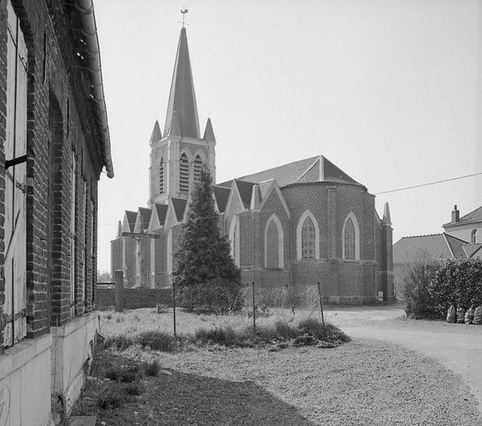 La construction d'une église est envisagée vers 1850. L'emplacement choisi permet la construction d'un ensemble : église, presbytère et cimetière. Ce projet avec cimetière se fait à une époque où ces derniers sont déplacés à l'extérieur des villages pour raisons hygiéniques. Les archives conservent un document faisant mention d'un projet non daté d'église et de presbytère par l'architecte Alexandre Grimault. Le projet et le cahier des charges daté 1852 de l'architecte Louis Dutouquet comprend la construction d'une église, d'un presbytère, et la clôture du cimetière. Les travaux commencent la même année, mais des problèmes avec l'entrepreneur Morelle retardent l'achèvement des travaux de l'église, réceptionnés en 1859. Le sculpteur Buisine-Rigot réalise l'autel, le tabernacle et un retable en bois de sapin et tilleul dans le style gothique du 13e siècle.