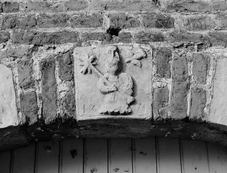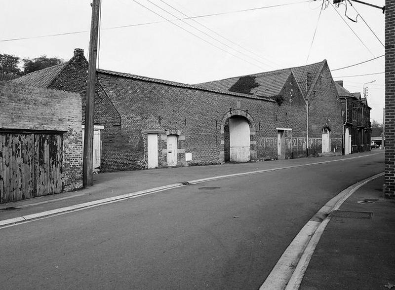 Cette ferme est à cour fermée est située à côté de l'ancienne mairie. Elle est composée d'un portail (porte charretière et ouverture piétonne) , des communs, une grange dimière et d'un logis. L'ensemble est assez transformé : le portail a été percé de nouvelles ouvertures, sa couverture a été arasée et la grange a été aménagée en salle des fêtes puis local technique et a été adjointe d'un autre vaisseau avec pignon sur rue. L'usage des communs n'a pas pu être déterminé et a été adjoint d'un bâtiment neuf en parpaing. Le cadastre de 1830 indique les mêmes dispositions. Le logis est en rez-de-chaussée à 10 travées, en brique sur un soubassement en pierre de Tournai. Les ouvertures sont couvertes d'un arc segmentaire, dont la face est en ciment. Il est couvert d'une toiture à longs pans en tuile flamande plombifère, adjointe d'une lucarne moderne. Un trottoir en dalles de pierre de Tournai longe le logis. La porte cochère et l'ouverture piétonne du portail ont un chaînage en pierre de Tournai.