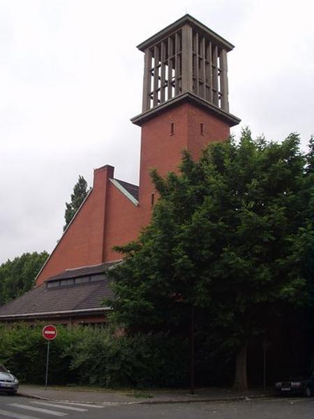 L'église en brique, de plan rectangulaire, a une ossature en béton armé. Elle comprend la nef, d'une capacité d'accueil de 700 personnes, un vaste choeur, deux vaisseaux latéraux. Le clocher de plan carré jouxte le choeur. Les vitraux sont dus à Largillier.