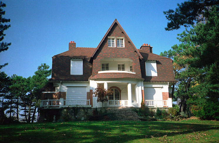 La villa Les Sapinettes a sans doute été construite peu avant 1928 (elle est publiée dans " La Vie à la Campagne " le 15 août 1928) par les architectes J. Pers et J.-L. Ferlié, également auteurs de la villa Laurentia dans la même station. A l'origine, le pignon de l'élévation principale était en pan de bois apparent ; il a été recouvert d'un bardage à une date inconnue, antérieure à 1996. Selon les plans publiés dans " La Vie à la Campagne " en 1928, la villa est située dans un beau site boisé de pins et très accidenté ; elle est implantée au sommet d'une butte naturelle ; du porche d'entrée de la propriété, un chemin en lacets conduit au perron de la villa et au garage. Le sous-sol, en partie remblayé, comporte le garage à gauche, des WC, l'escalier d'accès au rez-de-chaussée, une cave, une buanderie, la chaufferie et le local à charbon à droite. Le rez-de-chaussée ouvre par une terrasse de plan cintré à deux colonnes ; la terrasse se poursuit à gauche et à droite sur la façade principale, devant le salon et la salle à manger, et le long de l'élévation de gauche, devant le salon et le studio ; à l'intérieur, on accède par un hall central à la salle à manger, à droite, au salon, à gauche, à l'arrière duquel se trouve un studio ; au fond du hall se trouve l'escalier d'accès aux combles, derrière lequel est située une chambre pour un couple de domestiques ; l'office est située entre le hall, la salle à manger et la cuisine, celle-ci se trouvant à l'arrière de la salle à manger ; un escalier de service extérieur permet d'accéder directement à la cuisine par la façade de droite. Le premier étage de comble est formé de 5 chambres groupées autour de la cage d'escalier (les chambres de maître sont situées au-dessus du salon et de la salle à manger) ; une terrasse de plan cintré ouvre en façade ; elle ne donne pas sur une chambre, mais derrière elle sont situées deux salles de bains et un cabinet de toilettes, groupés entre cette terrasse et la cage d'escalier. Le deuxième étage de comble comprend quatre chambres (deux chambres d'amis donnant sur les façades antérieure et postérieure et deux chambres de bonne, plus petites, sur les façades latérales) groupées autour de la cage d'escalier. Il n'y a pas d'escalier de service dans oeuvre. Les pièces principales sont traitées en style " normand ", avec plafonds à solives apparentes et lambris de chêne.