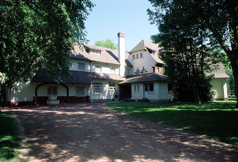 Léon Hoyez, qui reprend l'agence d'Arsène Bical, à la mort de celui-ci en 1924, a présenté cette villa et son plan développé en Y au salon d'automne de 1927. D'après les plans publiés dans " La Construction moderne " le 5 août 1928, elle ouvre sur un grand hall à trois baies ; au rez-de-chaussée, à gauche, une des branches du Y se termine par une chambre à bow window ; à droite, la deuxième branche est constituée du salon et s'achève par la salle à manger. Un escalier tournant en bois partant du fond du hall mène à l'étage de comble. Un couloir, desservant le salon et la salle à manger aboutit à la troisième branche du Y à l'arrière (l'escalier menant au sous-sol part de ce couloir) : il dessert la cuisine, l'office et, à l'extrémité, la salle du personnel. Au-delà de cette branche se trouve un garage pour deux véhicules, indépendant. A l'étage de comble, au-dessus du hall, se trouvent les deux principales chambres ; de part et d'autre, se trouvent salle de bains et cabinets de toilette ; les branches de gauche et de droite abritent chacun une chambre ; à l'arrière la troisième branche, au-dessus des pièces de service et du garage, abrite la lingerie puis, desservie par un couloir latéral, trois chambres de bonne, la chambre du chauffeur, toutes quatre équipées d'un lavabo, la salle de bains des domestiques et un débarras. L'accès à cette partie réservée à la domesticité se fait par un escalier droit longeant l'office (sur le seuil de l'escalier, une porte permet d'accéder directement à l'office). A des dates indéterminées, l'escalier ouvrant sur le hall a été déplacé, le garage a été transformé en logement de domestiques, l'auvent couvrant l'accès au hall a été supprimé et un bow window a été ajouté à chacune des deux chambres situées au-dessus du hall.