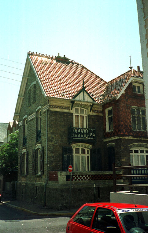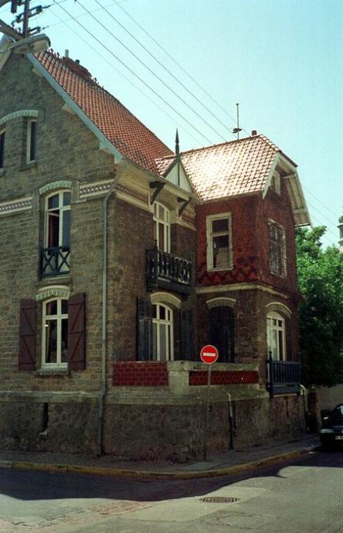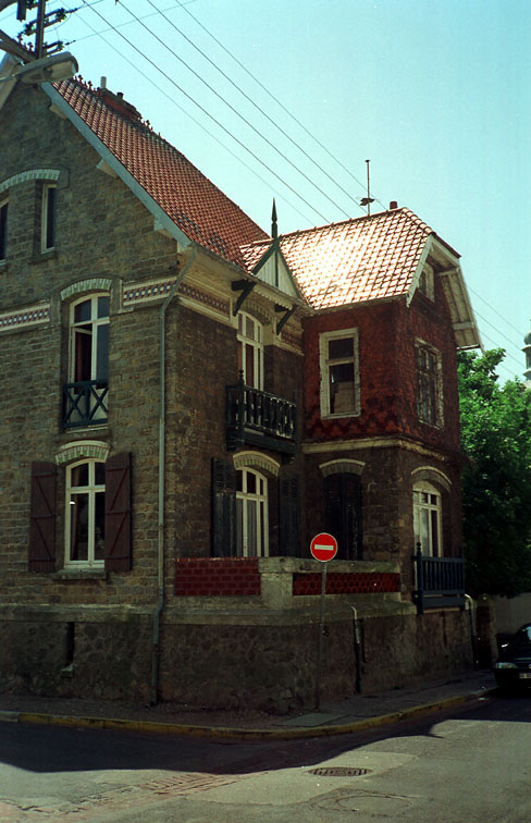 Construite sur un niveau de soubassement, cette maison est formée de deux corps de bâtiment perpendiculaires ménageant une terrasse dans l'angle rentrant. Eléments de décor : céramique en frise, ferme de toit débordante et balcons.