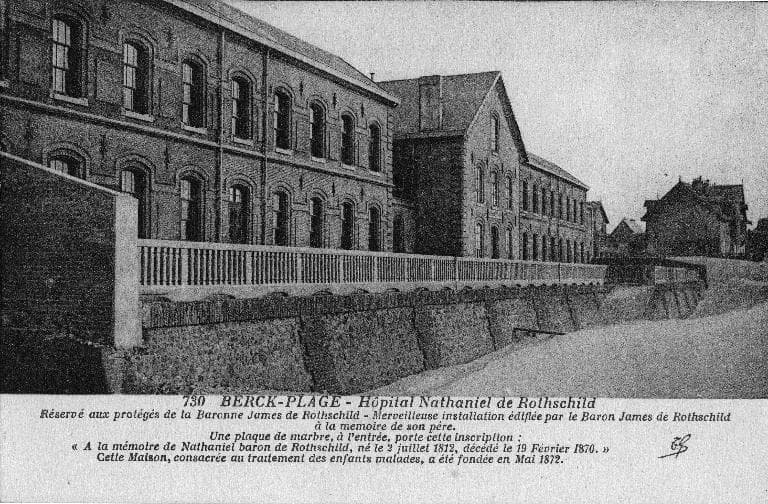 Peu après l'inauguration du grand hôpital maritime en juillet 1869, le baron James-Nathan de Rothschild songea à faire bénéficier les enfants juifs nécessiteux des bienfaits de la cure marine et il décida, dès le mois de janvier 1870, la fondation d'une institution analogue à celle qui venait d'être réalisée par l'administration de l'Assistance publique de Paris. Il acquit pour cela un assez grand terrain en bordure directe de la plage, au nord du lotissement devant constituer la station de Berck-Plage, et confia le projet à Emile Lavezzari, l'architecte qui avait déjà édifié le petit, puis le grand hôpital maritime pour le compte de l'Assistance publique de Paris. En raison du déclenchement de la guerre franco-allemande, les travaux de construction furent retardés et l'ouverture de l'hôpital eut seulement lieu le 24 mai 1872 ; il fut baptisé hôpital Nathaniel-de-Rothschild en l'honneur du père du baron James décédé en 1870. Cet établissement se composait initialement d'un pavillon flanqué d'une unique aile du côté sud et offrait, lors de son ouverture, une capacité d'accueil de 40 lits. Après la mort du baron James en 1881, son frère, le baron Arthur, et sa veuve la barone Laura de Rothschild entreprirent d'exécuter un agrandissement par adjonction d'une seconde aile, identique à la première, du côté nord. Elle fut achevée en août 1883, ce qui donna à l'édifice une symétrie parfaite en élévation et permit de porter sa capacité d'accueil à 100 lits. Contrairement à ce qui avait été fait au petit et au grand hôpital maritime, les bâtiments furent ici dressés parallèlement et non perpendiculairement au littoral, et ce afin que l'air marin pût s'engouffrer directement à l'intérieur des salles, une fois les fenêtres grandes ouvertes, et en chasser ainsi aisément les miasmes délétères. En 1931, date de la mort de la baronne Laura de Rothschild, sa famille vendit l'établissement à la Fondation franco-américaine qui le rebaptisa dès lors hôpital Jalaguier. Les destructions perpétrées par l'armée allemande durant les années de l'Occupation, dans le cadre de la mise en défense du littoral de la Manche, portèrent sur toutes les constructions donnant directement sur le front de mer ; ce fut ainsi que l'hôpital fut complètement détruit. Au lendemain de la Seconde Guerre mondiale, la Fondation franco-américaine éleva sur le même emplacement le centre médical Jacques-Calvé actuel.L'édifice était constitué de trois corps de bâtiment alignés le long de la plage et donc faisant face à la mer. Un bâtiment central en forme de pavillon était flanqué de deux bâtiments indépendants de plan rectangulaire, chacun relié au pavillon central par une courte galerie de communication en simple rez-de-chaussée alors que les trois bâtiments s'élevaient d'un étage. Le pavillon central abritait l'administration et les services généraux au rez-de-chaussée, les logements du personnel à l'étage. Les bâtiments latéraux renfermaient au rez-de-chaussée les réfectoires et la salle de classe des enfants malades, au premier étage les dortoirs. Au-devant des bâtiments s'étendait une large terrasse maçonnée, close par une barrière, destinée aux ébats des enfants lors des jours de beaux temps. Sur l'arrière s'étendait une vaste cour.
