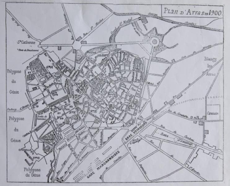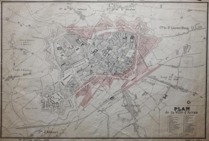 Jusqu'au 18e siècle, Arras est une ville double constituée de la cité épiscopale, héritage de la cité antique de Nemetacum et de la ville médiévale formée autour de l'abbaye Saint-Vaast et de ses faubourgs. Il faut attendre 1749 pour que ces deux ensembles soient réunis sous le nom d'Arras.£Au 17e siècle, la ville médiévale, délimitée par un mur d'enceinte, se structure en paroisses qui ont joué un rôle déterminant dans l'élaboration du cadre bâti et dans le développement de la société urbaine. Aujourd'hui encore, ce découpage paroissial est visible dans la structure de la ville et permet de distinguer les différents îlots urbains et leur période de construction associée.£Ainsi, se distingue un ensemble de quartiers issus des anciennes paroisses médiévales : £- Le quartier Saint-Géry issu de l'ancienne paroisse Sainte-Croix.£Il se structure autour de l'actuelle place Guy-Mollet qui constitue l'ancien emplacement de l'église Sainte-Croix. Ce quartier est avant tout résidentiel, le parcellaire y est étroit.£- Le quartier Saint-Maurice£Il regroupe les anciennes paroisses Saint-Maurice et Saint-Aubert qui constituent le quartier populaire d'Arras. Tout comme le quartier Saint-Géry, il se caractérise par de petites parcelles sur lesquelles s'élèvent des habitations ouvrières. £- Le quartier de la Basse-Ville£Il a été constitué au 18e siècle sur les plans de l'architecte Beffara. Contrairement au centre-ville, les artères y sont larges et convergent vers une place octogonale : la place Victor-Hugo. Il constitue le quartier des grandes demeures bourgeoises.£- Le quartier de la gare£Il se structure autour de la place du Maréchal-Foch et constitue le point de liaison entre le centre-ville et les faubourgs du sud arrageois. Il est le lieu de réunion des grands boulevards où sélèvent de grandes maisons bourgeoises du 19e siècle. Au nord de ce quartier, se situe la zone industrielle dArras présentant un bâti très composite où immeubles anciens côtoient immeubles contemporains. Ce quartier est relativement récent car il sest essentiellement développé au 20e siècle, à la suite du démantèlement des fortifications.£- Les paroisses Saint-Géry, La Madeleine et Saint-Jean-de-Ronville qui structurent aujourd'hui l'hypercentre d'Arras£La paroisse de la Madeleine caractérise le pourtour de l'abbaye Saint-Vaast. S'y mêlent hôtels particuliers du 18e siècle, institutions et habitat.£Les paroisses Saint-Géry et Saint-Jean-de-Ronville caractérisent le coeur de la ville occupé par les commerces. Le bâti y est relativement homogène et les maisons de ville y sont majoritaires. Depuis le Moyen-Age, ce quartier est dévolu à lactivité commerçante. Au 19e siècle, les maisons de commerce sont florissantes et laissent la part large au secteur de lalimentaire.£Au delà du centre-ville, au sud d'Arras, les faubourgs de Ronville et de Saint-Sauveur présentent un bâti hétérogène où se mêlent maisons de ville du début du 20e siècle et immeubles locatifs récents : l'Université d'Artois, construite dans les années 1990, est venue bouleverser la structure de ces quartiers occupés de nos jours par un nombre grandissant de logements destinés aux étudiants.£Délimitant cet ensemble de quartiers, les grands boulevards, construits à la suite du démantèlement des fortifications à la fin du 19e siècle (1891) , disposent également dune certaine unité architecturale se traduisant par la présence de grandes maisons bourgeoises poursuivant léclectisme du 19e siècle associé à quelques éléments du style 1900.£Ainsi, à chacun des quartiers constituant le territoire arrageois, est associé un type de bâti particulier et une période clé dans lhistoire de lévolution de la ville. Toutefois, les deux grands conflits mondiaux du 20e siècle et les périodes de reconstruction qui leur ont succédé sont venus bouleverser le cadre bâti, introduisant des éléments darchitecture moderne dans des quartiers majoritairement marqués par le style classique du 18e siè cle. La Première Guerre mondiale a constitué le premier élément restructurant de ce cadre.£Au cours de la Première Guerre mondiale, la ville d'Arras a été anéantie à 85%. Au lendemain de l'armistice, c'est un décor de désolation qui s'offre aux habitants d'Arras. L'ensemble de la ville est à reconstruire, seulement 5% des maisons sont indemnes. Le coeur historique de la ville a été touché de plein fouet laissant les places, lhôtel de ville et le beffroi dans un état de ruine. La reconstruction s'annonce longue. Ses principes sont établis par la loi Cornudet d'avril 1919 qui impose aux villes de plus de 10000 habitants de se doter d'un plan d'aménagement, d'embellissement et d'extension afin de s'adapter aux besoins de la ville moderne. Ce plan d'aménagement doit être accompagné d'un plan d'alignement et de nivellement des parties à reconstruire. À Arras, ce plan prend le nom de Projet d'élargissement et de redressement concernant 60 rues, places, cours, pourtours et boulevards approuvé par décret en 1924.£Ce projet ambitieux ne se concrétisera finalement que par des travaux de première nécessité pour remettre la ville sur pied, notamment en dégageant les grands monuments tels que l'hôtel de ville et le beffroi. L'élargissement des voies se cantonne essentiellement aux axes principaux : les rues commerçantes Gambetta, Ernestale et Saint-Aubert où le plan d'alignement s'applique non sans résistance des propriétaires dont les immeubles font l'objet d'expropriation par la municipalité et sont amputés de plusieurs mètres. D'autre part, des rues sont percées telle la rue Paul-Doumer qui se substitue en partie à la place de la Madeleine et permet une circulation plus aisée dans le centre-ville. Certaines places sont agrandies, c'est notamment le cas de la place de la Vacquerie, et d'autres sont créées sur l'emplacement d'immeu