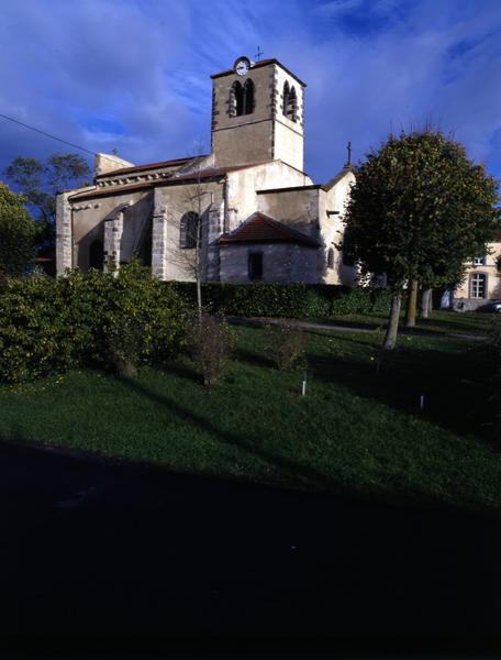L'église est bâtie sur une motte défensive primitive. La nef à deux travées est couverte d'une voûte en berceau plein-cintre contrebutée par les voûtes en demi-berceau des deux collatéraux. La nef possède deux arcs doubleaux brisés. Son couvrement repose sur quatre piles cruciformes à impostes en quart-de-rond. Quatre culots sont placés à la naissance de la voûte. Le transept, le chevet droit et ses deux chapelles latérales sont également couverts de voûtes en berceau. Seule la croisée du transept est voûtée d'arêtes. Les arcs doubleaux des chapelles du choeur et des bas-côtés retombent sur des piliers engagés surmontés d'impostes. Les murs sont enduits mais les contreforts en moellon de calcaire laissent penser que ce matériau est employé pour l'ensemble de la construction. Les chaînes d'angle et la corniche de la façade occidentale, en andésite, sont dues à des remaniements récents. Les baies ont également été remaniées : celle du choeur, tripartite, possédait deux meneaux verticaux, baies en plein-cintre agrandies, baies trilobées du clocher. Les bas-côtés et les bras du transept sont couverts de toits à un pan à ruellée. Le clocher s'élève sur la croisée du transept. Il possède un toit en pavillon. Deux longs pans couvrent la nef et le chevet ; les pignons des façades ouest et est sont découverts. Des tuiles plates mécaniques remplacent une couverture en tuile creuse.