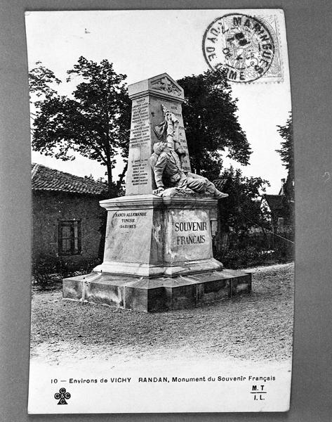 L'édicule, réalisé en calcaire, est un pylône à degrés et ressauts posé sur un socle. Sur la face principale est inscrit le nom de l'association commanditaire et près du relief est gravée l'inscription : Aux enfants du canton de Randan morts pour la patrie.