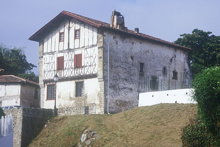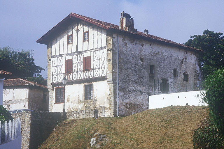 La construction remonte à la première moitié du 17e siècle. Une première restauration a lieu en 1745, date inscrite sur le linteau de la porte de l'élévation postérieure ouest (décor : 5 "lauburus", rosace). Avant 1862, l'édifice abrite le presbytère. À partir de 1862, il fait office d'école publique pour garçons, de mairie, de logement de l'instituteur et de prison. Une deuxième restauration est entreprise en 1874, date inscrite sur la clé de l'arc de la porte de l'élévation antérieure est, accompagnée de l'inscription "MICHEL DURRUTY ET MARIE EYHERABIDE L'AN 1874". À cette occasion, une porte rectangulaire à encadrement de bois est construite à l'intérieur même de l'arc en plein-cintre à gros claveaux de la porte originelle, partiellement murée. De même, les ouvertures de l'élévation latérale nord sont refaites.