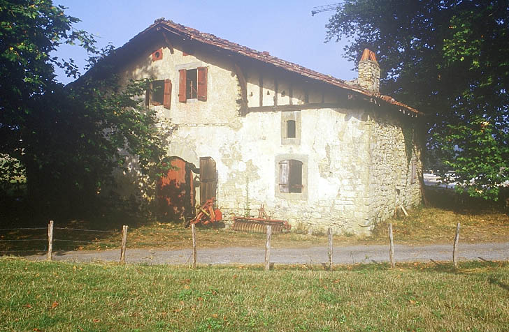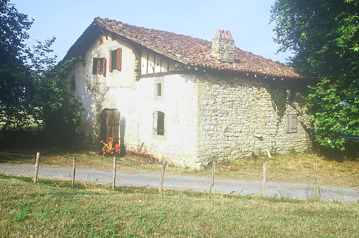 logis isolé sans dépendance ou avec un appentis,logis indépendant avec dépendances dispersées,ferme en corps de bâtiment unique : bipartite devant avec étable sur l'arrière et fenil au-dessus,ferme en corps de bâtiment unique : tripartite devant avec ezkaratz au centre, étable sur l'arrière et fenil au-dessus,ferme en corps de bâtiment unique rectangulaire avec accès au logis sous le gouttereau, grange et étable