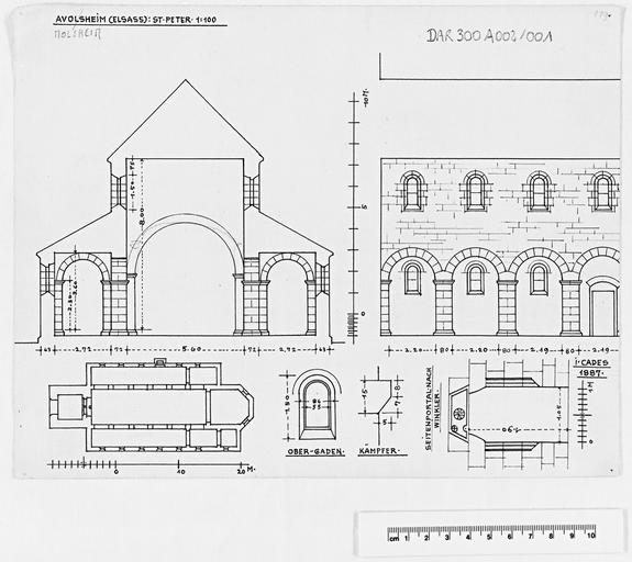 Ancienne église paroissiale dédiée à saint Pierre, dite Dompeter, située dans un village disparu avant la fin du 16e siècle, cité au 10e siècle sous le nom de Dumphitere. L'édifice a servi d'église-mère à Molsheim et aux communes environnantes. Selon la légende elle fut fondée au 4e siècle par saint Materne. L'église primitive mérovingienne, du 7e ou 8e siècle, d'influence syrienne, avait 3 vaisseaux et un choeur semi-circulaire flanqué d'une chambre à reliques et d'une sacristie. Elle est attesté par les fouilles de 1914 et correspond à la plus ancienne église rurale d'Alsace. Elle fut reconstruite au 11e siècle selon le même plan, mais allongée de 2 travées vers l'ouest, et consacrée entre 1049 et 1053 par le pape Léon IX. De cette époque subsistent le vaisseau central avec ses piliers et grandes-arcades, les linteaux des portes latérales et quelques vestiges d'inscriptions. Vers 1160 les pilastres à l'entrée du choeur furent renouvelés, les accès furent élargis et une tour occidentale fut édifiée, ornée de frises d'arceaux. De cette dernière subsiste le rez-de-chaussée car les étages gravement endommagés par la foudre en 1746 furent détruits en 1762 et reconstruits sans décor en 1767 (date sur la clé de cintre au rez-de-chaussée). En 1828 les murs des bas-côtés (ajourés de fenêtres gothiques) furent reconstruits avec des fenêtres néo-romanes (trop grandes) et avec remploi des portes du 11e siècle par l'architecte Reiner. En 1835 le choeur semi-circulaire roman, probablement partiellement mérovingien fut remplacé par l'actuel choeur à pans coupés par l'entrepreneur I. Grass contre l'avis de l'architecte Samain. L'église, longtemps laissée à l'abandon, a été restaurée en 1968. La tribune et la chaire ont été supprimées, les statues et objets du culte sont conservés dans l'église d'Avolsheim. Site classé le 16 avril 1934.