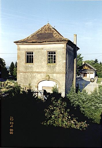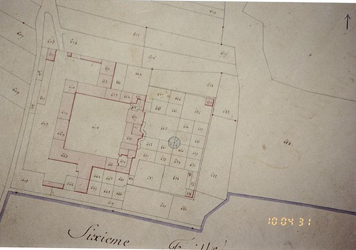 De l'ancien château subsistent une partie du soubassement de la façade sur cour, les ruines des 2 pavillons d'angle de l'enclos du jardin (autrefois couverts d'un bulbe) , le pigeonnier à étage, de plan rectangulaire, avec toit à croupes et avec portes charretières en arc surbaissé ; l'une est ornée d'un cartouche sculpté, bûché avec date 1711, l'autre porte le même millésime sur la clé de cintre. Côté est subsiste l'ancienne maison du portier à 1 étage sur rez-de-chaussée avec toit à demi-croupes. Dans le jardin de la maison moderne No 12 se trouve l'ancien puits.