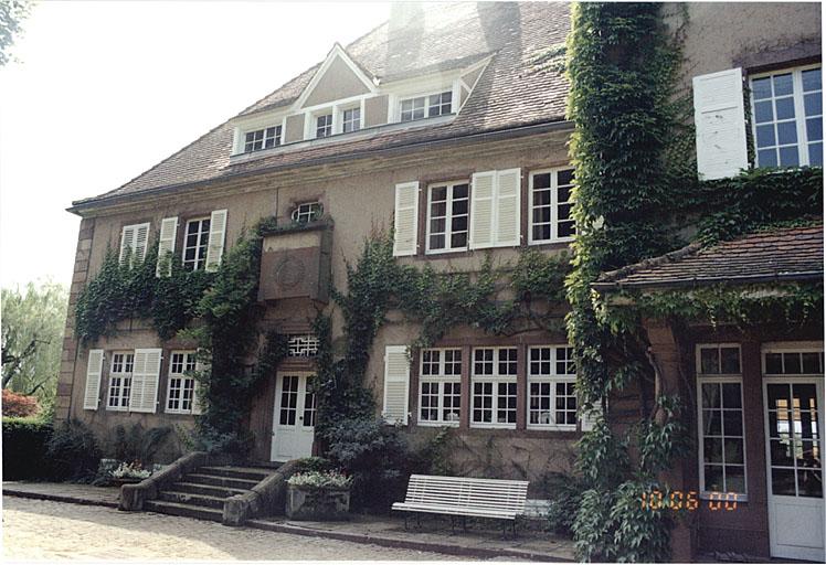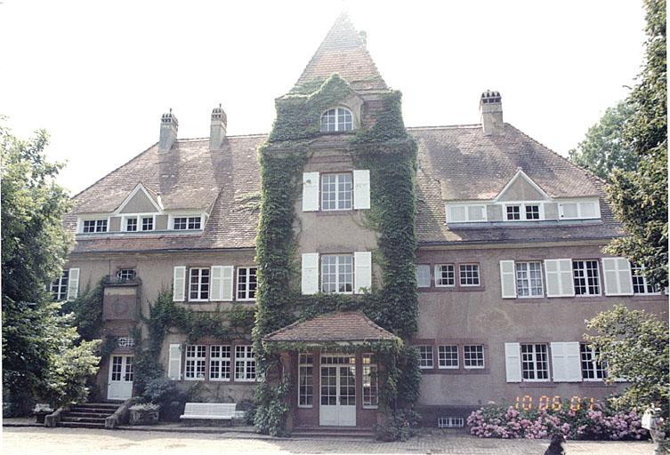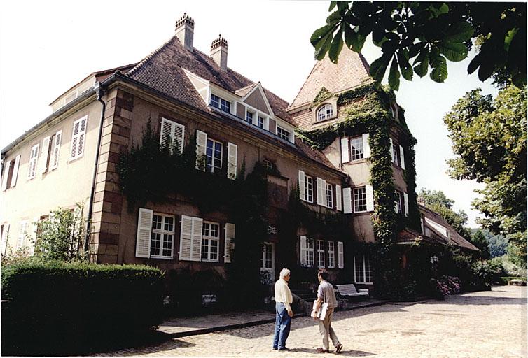 La demeure principale est en grès avec chaînes et grand toit à croupes. Elle comporte un étage sur rez-de-chaussée et cave, une tour centrale dans-oeuvre, à 2 étages, précédée d'un petit porche et une aile en retour à l'arrière avec terrasse dans l'angle, remaniée et abaissée. La partie gauche de la maison et la tour correspondent en grande partie à l'état représenté sur un dessin de 1882. La porte moulurée avec crossettes est d'origine. Accolé au nord de la demeure, se situe la maison du personnel, en rez-de-chaussée, en pan de bois de style néo-régional, avec une fenêtre en bois sculpté de style Renaissance. Les bâtiments annexes sont en grès ; une dépendance agricole est en grès et pan de bois. La maison forestière à l'est, de style néo-régional, est en maçonnerie et pan de bois. La fontaine est étudiée dans la base Palissy.
