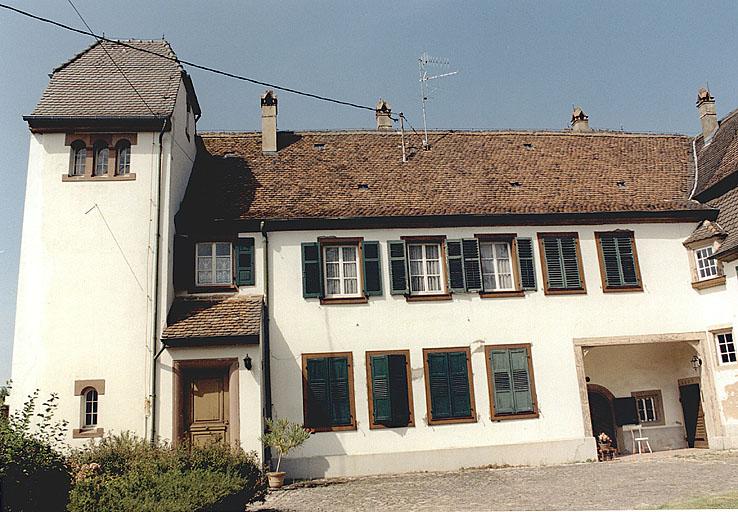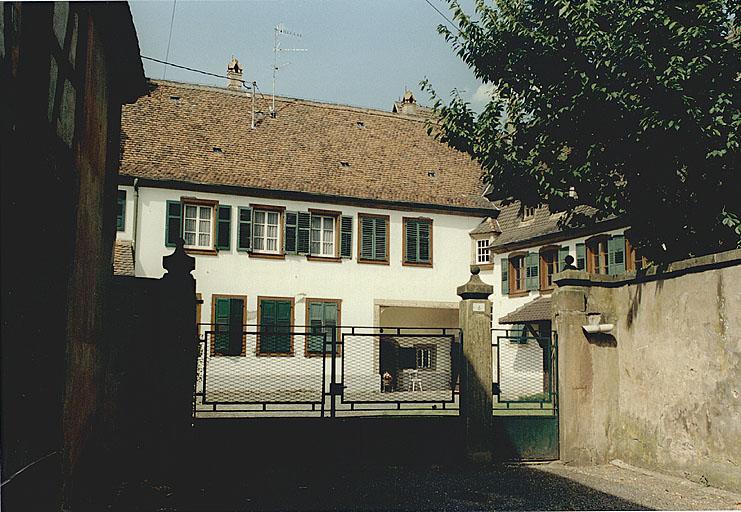 Le logis, adossé au mur d'enceinte nord, est accolé à la tour des fortifications ; en équerre une remise et un logement au 1er étage. La tour est en moellons de grès, avec chaînes à bossages et trous de pince ; un jour au rez-de-chaussée, une fenêtre à l'étage. L'intérieur n'a pas été vu. Le logis principal est percé de fenêtres à chambranles de bois ; à l'extrémité droite un porche au rez-de-chaussée, donne accès à la porte d'entrée et à la porte du cellier en plein cintre, à chambranle mouluré, avec congés. Dans l'angle, entre le logis et l'aile en retour, une fenêtre à chambranle de grès mouluré, avec congés et à l'étage une fenêtre à chambranle de bois. Sur le mur-gouttereau postérieur, porte rectangulaire du cellier au rez-de-chaussée, fenêtres rectangulaires à l'étage, plus deux fenêtres en plein cintre, jumelées. L'aile est percée d'une grande porte rectangulaire et de deux baies en plein cintre ; fenêtres en arc segmentaire à l'étage ; toit à longs pans brisés ; pignon ajouré de trois oculus. A l'arrière, sur la Sauer, porte donnant sur un lavoir, étage en pan de bois. Tour à l'ouest, en maçonnerie, percée de petites fenêtres en plein cintre. Portes cochère et piétonne à piédroits de grès, avec amortissements incurvés et globes.