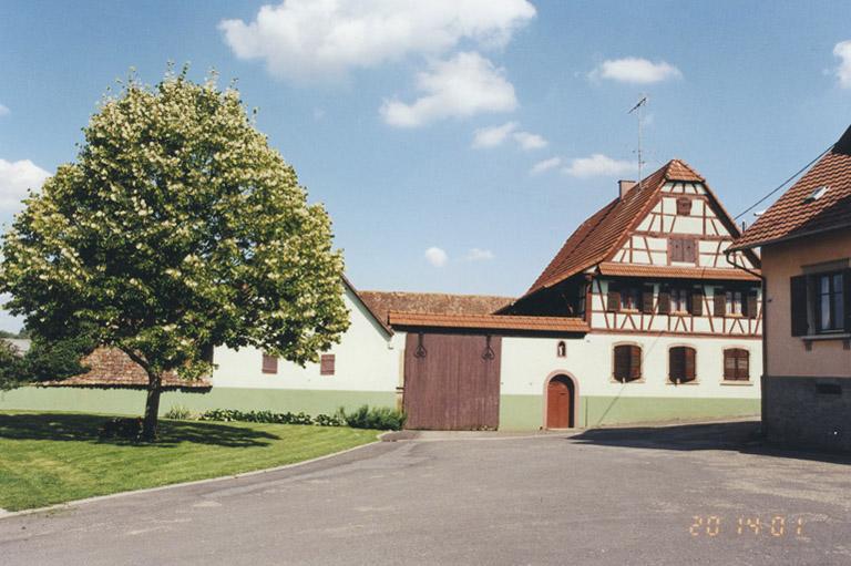 Logis portant la date 1766 sur le linteau de la porte d'entrée, avec les initiales du commanditaire I. S. T. Sur la porte de cave, marque lapidaire et les initiales : I. S. T. / M. K. L'étable et la grange sont probablement contemporaines du logis.