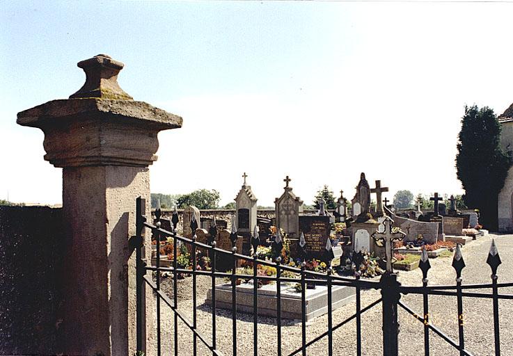 De nos jours la chapelle se compose d'un clocher choeur et d'une petite nef d'une travée. Accolée sur la face ouest celle-ci est plus étroite que le volume qu'elle précède. De plan quadrangulaire le choeur dispose de chaînes d'angle harpées côtés sud-est et nord-est et de contreforts saillants sur ceux du nord-ouest et sud-ouest. Orientés selon un axe nord-sud, ces excroissances sont les vestiges probables des murs de chevet de la nef supprimée. Une haute baie axiale à chambranle en arc brisé occupe la partie inférieure du mur de chevet. Deux oculi, disposés de manière non symétrique, prennent place de part et d'autre de l'ouverture. Tous trois sont actuellement obturés. Seule la fenêtre en plein cintre occupant le pan sud fournit un apport de lumière. Sur le pan nord apparaissent les témoignages d'une porte communicant avec le choeur depuis ce qui fut vraisemblablement une sacristie. La partie apparente de ce linteau en arc comporte sur la face intérieure de la clef deux écus accolés ornés des armoiries des Walbach ( d'argent à deux écussons de gueules supportés par une étoile à six rais d'or) et des Blumeneck (fascé d'azur et de nébulé d'argent). Desservie par une porte en plein cintre, éclairée par deux petites ouvertures latérales et couverte d'un toit à pans, la nef est voûtée en berceau. Elle ouvre sur le choeur voûté d'arrêtes. Le cimetière de plan quadrangulaire est clôt d'un mur en moellons partiellement enduit. Un portail muni de piédroits en grès rose avec amortissement se positionne axialement sur le pan ouest du champ de repos.