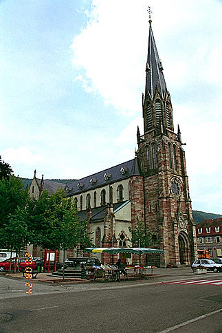 La paroisse de Fellering dépendait de celle d'Oderen jusqu'en 1801 ; une chapelle dédiée à saint Antoine existait depuis 1702, reconstruite en 1787 (à l'emplacement de la fontaine sur la place actuelle). Une nouvelle église fut élevée en 1822, remplacée par l'édifice actuel commencé en 1874. Le bâtiment porte la date 1878, mais il ne fut achevé qu'en 1880. D'après M. Schickelé, cette église néo-gothique est l'oeuvre de l'architecte Charles Winkler de Colmar.