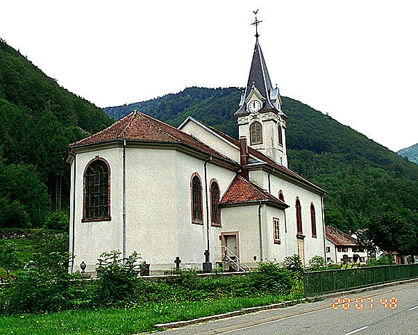 Le village dépendait de la paroisse d'Oderen, puis à partir de 1796 de celle de Kruth. En 1834 la commune décida de construire une église dans le village et la paroisse fut créée en 1836. Le projet est une réalisation de l'architecte de Colmar A. Sassary qui a ajouté devant le clocher-porche demi-hors-oeuvre un porche néo-classique (date 1834 sur la porte d'entrée). La partie supérieure du clocher a été ajoutée en 1908. L'église doit être restaurée à l'intérieur en 1996.