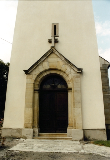L'église et le cimetière qui l'entoure sont situés sur une terrasse à flanc de coteau. L'église se compose d'une nef à 4 travées, d'un choeur à 5 pans avec sacristie accolée au sud, d'un clocher porche hors oeuvre à 3 niveaux, couvert d'un toit à bâtière surmonté d'une grille en fer forgé. Porche d'entrée : arc en plein-cintre à extrados en escalier surmonté d'une croix. Le clocher est éclairé par une fenêtre médiévale en arc brisé au rez-de-chaussée (face sud) , une fente d'éclairage au 2ème niveau et une fenêtre en plein-cintre au niveau du beffroi des cloches. Chaînages d'angle aux angles de la nef. A l'intérieur, décor simple : moulure faisant le tour de la nef, plafond peint. Tribune d'orgue soutenue par 2 poteaux.