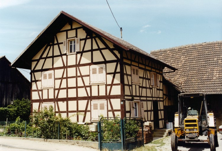 La ferme ne figure pas sur le cadastre de 1836. La structure du pan de bois permet de dater le logis de la 2e moitié du 19e siècle. Une inscription illisible figure sur la sablière d'étage du pignon sur rue (... FRIDOLIN ... ANNA MARIA...).