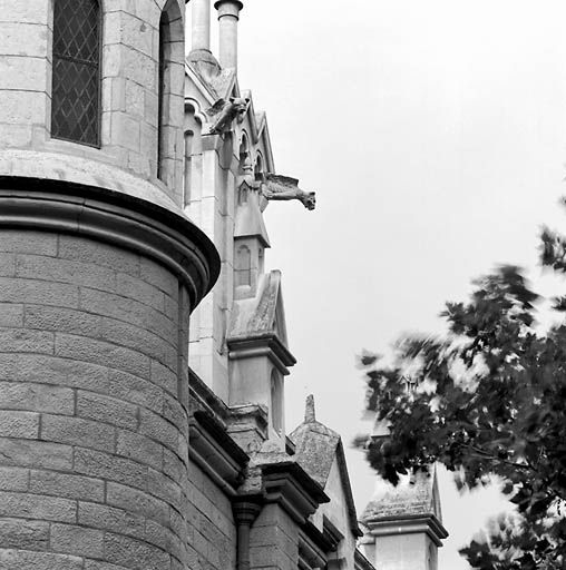 ¶Dans le devis estimatif établi en mai 1862 (ou 61), Clair Tisseur indique la provenance des matériaux de construction à utiliser : "moellons de Couzon, voûtes en tufs, couverture en tuiles Fox, ardoise, écailles ; pierre de taille : allèges en pierre de Saint-Cyr ou en vieille pierre de Villebois approvisionnée, socles en moellons de Breyna de tous les contreforts extérieurs, pierre de Villebois à moulure de tous les socles intérieurs, piliers et colonnes en Villebois ordinaire, pierre de taille de Tournus ou de Lucenay, pierre blanche du Midi des carrières de Saint-Paul, carreaudages en moellons de Couzon de tous les contreforts, carreaudage en pierre blanche du Midi, moellons de Couzon pour les façades latérales, marches en pierre de Villebois. Charpente de la flèche en sapin."