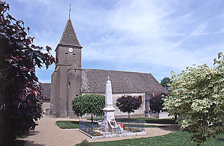 L'église construite au centre de l'agglomération dans l'enclos de l'ancien cimetière ; le gros oeuvre est en brique enduite, l'encadrement des ouvertures en pierre de taille. Dans le vestibule sous clocher se trouve, à droite, l'entrée de la tourelle d'escalier demi-hors-oeuvre qui dessert ce dernier, au fond, le portail de la nef à encadrement mouluré orné d'une accolade. La nef, à quatre travées délimitées par trois fermes à entraits et poinçons moulurés apparents, est couverte d'une voûte en berceau brisé. Elle est éclairée par quatre fenêtres en plein-cintre (comme toutes les fenêtres de l'édifice) régulièrement réparties sur chacun des murs latéraux ; l'arc-diaphragme qui la sépare du choeur est surmonté d'une baie en plein-cintre murée. Le choeur à une travée et abside polygonale, est couvert d'un berceau plein-cintre entre deux fermes et d'un cul-de-four polygonal. Une porte rectangulaire percé dans le pan gauche de l'abside donne dans une ancienne chapelle ? voûtée en plein-cintre, une autre porte, à gauche, ouvre dans une sacristie plafonnée. Toit à longs pans et croupe polygonale sur la nef et le choeur, croupe ronde sur la tourelle d'escalier, toit à deux pans sur l'ancienne chapelle et appentis sur la sacristie.