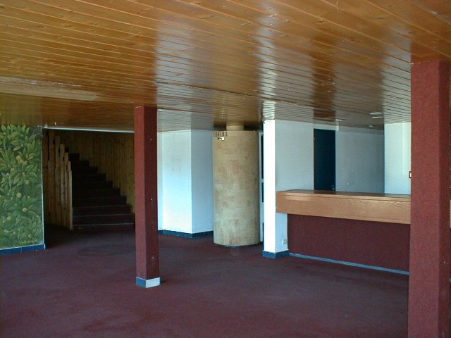 L'hôtel des Trois Arcs comprend 52 chambres (24 m2) dans les 4 niveaux supérieurs, et les parties communes et les services dans les 4 niveaux inférieurs. Le niveau 4 correspond à la restauration (salle à manger et cuisine). Le niveau 3 de plain-pied (du côté de l'amont avec le domaine skiable) correspond à l'accueil. Les 2 niveaux inférieurs abritent caves, locaux techniques, entrée de service côté aval, et des chambres complémentaires ouvertes au nord. Les chambres sont orientées soit au sud (25, 4 m2, profondeur 8, 13 m) , soit au nord (23, 8 m2, profondeur 7, 63 m). La largeur est de 3, 12 m (trame constructive entre murs de refend). Les murs extérieurs sont recouverts d'un essentage de bardeaux de mélèzes.£Le balcon surélevé par rapport au niveau de la chambre permet un meilleur ensoleillement et une vue plus large. Ch. Perriand conçoit l'aménagement intérieur : la banquette intérieure en prolongement du balcon extérieur qui forme un couchage et une marche d'accès au balcon ; les placards penderies, fermés par des portes " respirantes " faites de lames de bois croisées, accompagnés d'un " écritoire " ; le bloc cuisinette placé à l'entrée de la chambre ; les appliques murales pivotantes ; le " range-valises " placé en partie supérieure de l'entrée. "Pour l'équipement des chambres d'hôtel, l'harmonie découlait de la banquette-balcon. Les rangements hauts et bas furent normalisés et fermés par des portes faites de lattes de bois alternées, pour créer une vibration visuelle. Dès l'entrée, une niche était aménagée avec un bloc réfrigérateur surmonté d'une vasque d'eau et de deux plaques électriques au-dessus d'un vaisselier en sapin, avec toute la vaisselle utile pour préparer un délicieux goûter. J'avais sélectionné la literie, les matelas, des produits de la vallée : les tissus de Seez, peaux de mouton ou de vachette et, par la galerie Steph Simon à Paris, mes éternelles chaises paillées" (C. Perriand. " Une vie de création ", p. 340).