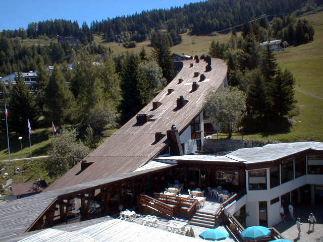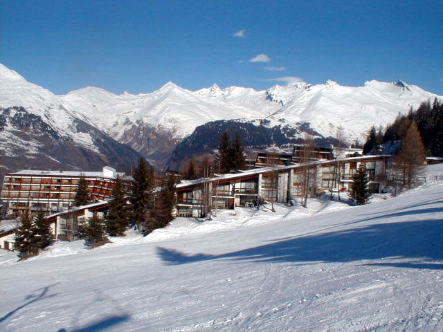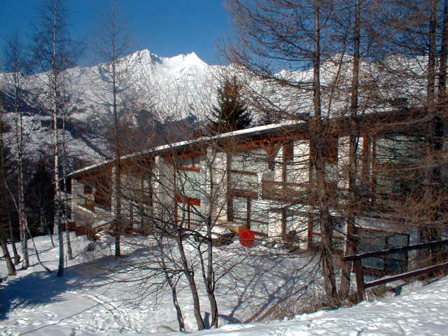 Le projet comporte 14 appartements mitoyens dans la partie supérieure, et la partie inférieure abrite le restaurant de l'hôtel de la Cachette auquel il se raccorde par une galerie vitrée. La construction comprend un seul corps de bâtiment unique, implanté perpendiculairement aux courbes de niveau du terrain avec une coursive longitudinale à l'arrière de l'édifice. Le volume suit la pente du terrain. Le plan est tracé avec une double incurvation : incurvation de la section qui suit la pente arrondie du terrain, et incurvation du plan, qui suit l'arc d'un cercle d'environ 340 m de rayon. Le plan d'ensemble est comparable à une " épine dorsale ". Selon le degré de la pente, la différence de niveau entre chaque appartement varie entre 1/2 et 1 niveau. L'édifice est couvert par une toiture en bois bombée et galbée. La largeur des travées entre les murs de refend est variable pour chaque chalet. Les murs de refend ne sont pas parallèles entre eux, mais légèrement convergents pour suivre le plan de la construction. Tous les appartements comprennent deux niveaux (avec un escalier intérieur pour chaque logement) , et sont orientés uniquement au sud. Les rez-de-chaussée sont prolongés par des terrasses de plain-pied avec le terrain. Le niveau haut se prolonge, suivant les travées, par un balcon disposé entre deux murs de refends et protégé par la toiture.£La paroi extérieure de la galerie qui suit la double incurvation de la construction est réalisée comme une toiture en raison de son inclinaison. Elle est construite en béton, traitée comme une couverture et recouverte de planches de bois. Six entrées sont réparties tout le long de la galerie, étagées sur la pente, équipée chacune d'un sas, conçu en saillie dans la toiture-façade, traitée en maçonnerie de béton, peint. En raison de l'inclinaison de la façade nord, les chenaux de la toiture débordent largement pour déverser l'eau plus loin que le pied de façade. Ils sont réalisés en bois.