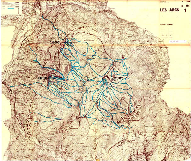 Les trois stations des Arcs, comprenant 30 000 lits touristiques, furent réalisées en une vingtaine d'années, sur les pentes de l'Aiguille-Grive (2732 m d'altitude) , au-dessus de Bourg-Saint-Maurice et d'Hauteville-Gondon pour les deux premières. De 1968 à 1973, c'est Arc 1600, considérée comme le laboratoire, et à partir de 1974, Arc 1800. Puis Arc 2000 sera fondée à partir de 1978, au cour de la vallée de l'Arc, au pied l'Aiguille Rouge qui culmine à 3226 m. Grâce à R Blanc (1933-1980) , berger dans son enfance sur la montagne des Arcs, moniteur de ski à Courchevel et guide de haute montagne, R Godino, jeune manager en développement, découvre le site en 1961. Il s'engage dans la création d'une station de sports d'hiver qu'il conçoit d'emblée comme une entreprise. Il constitue en 1964 la Société des Montagnes de l'Arc, chargée de réaliser toute la station, depuis l'acquisition des terrains jusqu'à l'animation culturelle et sportive, en passant par l'installation des remontées mécaniques, l'aménagement du domaine skiable, la construction des immeubles résidentiels et leur commercialisation. Godino s'assure que l'innovation soit permanente en s'entourant d'une équipe pluridisciplinaire qui intègre les fonctions de maître d'ouvrage, de maître d'ouvre et de gestionnaire. La composition des Arcs est inspirée des réflexions de Le Corbusier sur la cité moderne, et de la philosophie architecturale insufflée par C Perriand (1903-1999) , qui, à la demande de D Pradelle (1913-1999) , consacre 20 ans de sa vie de création de 1967 à 1987 à la conception de la station. Autour d'elle se rassemble un groupe de concepteurs qui partagent les mêmes convictions autour du mouvement moderne et des idées développées par les CIAM et Le Corbusier : l'équipe de l'AAM, composée des architectes-urbanistes D Pradelle, G Regairaz, G Rey-Millet, P Quinquet, A Bardet, J-G Orth, le graphiste P Faucheux qui conçoit la Coupole, dont la charpente en bois lui inspire le logo de la station, le charpentier menuisier B Taillefer, qui s'exprime comme architecte, les architectes R Rebutato et A Tavès et l'ingénieur J Prouvé qui conseille l'équipe à de nombreuses reprises. Ensemble, ils recherchent l'intégration au site, concentrant l'implantation des constructions pour en réduire l'impact dans le paysage. Ils font le choix de la station sans voitures, dont le tracé des chemins piétons structure l'organisation urbanistique des commerces, des équipements, et des entrées résidentielles. Certains immeubles sont disposés en peigne, perpendiculairement à la pente, laissant le plateau libre pour les pratiques sportives de ski en hiver et de golf en été. Malgré la grande densité des programmes, et les contraintes de la préfabrication, chaque logement est conçu comme une cellule individuelle dont l'organisation est déclinée sans cesse différemment, tout en répondant à des exigences de surfaces draconiennes, grâce aux recherches sur l'art d'habiter la montagne, absence de vis-à-vis entre logements, terrasses isolées, coursives collectives personnalisées, salles de bains cabines et mobiliers adaptés. Le départ en 1990 du fondateur des Arcs a morcelé la gestion de la station entre plusieurs partenaires, fragilisant le maintien de l'exceptionnelle cohérence architecturale et urbaine, qui a fait des Arcs un repère essentiel dans l'évolution de l'aménagement en montagne au XX° siècle.