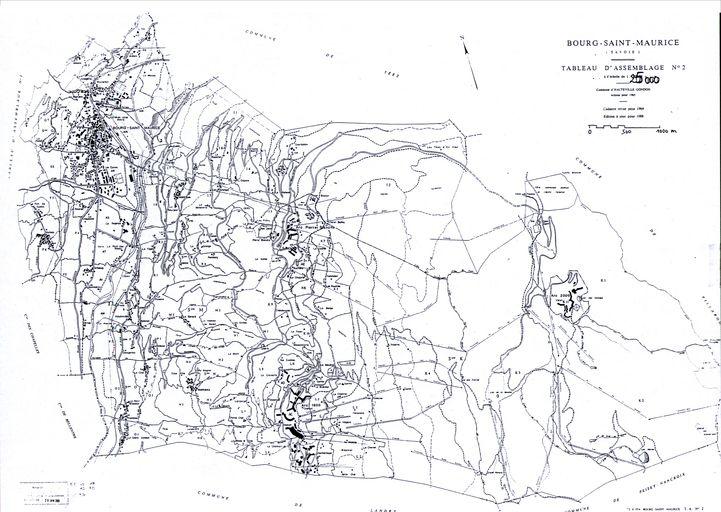 Le territoire de la commune de Bourg-Saint-Maurice s'étend sur une superficie de 15 383 ha, étagé sur les deux rives de l'Isère, agrandi du territoire de l'ancienne commune d'Hauteville-Gondon, conséquence de la fusion des deux communes (15 décembre 1964) en vue de mettre en oeuvre le projet de la station de sports d'hiver des Arcs. Sur la rive droite, c'est le territoire originel de la commune de Bourg-Saint-Maurice : le bassin du Versoyen en direction du Miravidi (3066 m d'alt.) , le vallon des Glaciers conduisant au col de la Seigne (2516 m d'alt.) , le vallon des Chapieux conduisant au Cormet de Roselend (2012 m d'alt.) , à la Combe de la Neuva et à l'Aiguille du Grand Fond (2920 m d'alt.) , celui de la Raja aboutissant au col de la Croix du Bonhomme (2433 m d'alt.) , le bassin du Charbonnet dominé par la Pointe de la Terrasse (2881 m d'alt.) et le bassin de l'Arbonne dominé par le Roignais (2995 m d'alt.). Tous convergent vers la cuvette de la vallée de l'Isère où est bâti le chef-lieu de Bourg-Saint-Maurice (800 m d'alt.) , surmonté à l'est des hameaux des Échines dessus (1328 m d'alt.) , des Echines dessous (1265 m d'alt.) et du Chatelard (955 m d'alt.) , à l'ouest de Vulmix (1018 m d'alt.) et la Thuile (1267 m d'alt.). Sur la rive gauche, sur le versant exposé à l'ubac, le quartier de Montrigon dominé par le Signal des Têtes (2356 m d'alt.) , et pour tout le reste l'ancien territoire de la commune d'Hauteville-Gondon : le village d'Hauteville, les hameaux de Montvenix, du Bérard et tous les écarts habités, au-dessus desquels ont été édifiées, à l'altitude des anciens alpages des Lanches, de Pierre-Blanche, du Charvet, de Chantel, des Villards et de Charmetoger, les deux stations d'Arc 1600 et d'Arc 1800. Une fois franchis les crêtes des Frettes et le sommet de l'Aiguille Grive (2732 m d'alt.) dont les pentes constituent le domaine skiable de la station, s'étend le vallon suspendu de l'Arc (site de la station d'Arc 2000) , dominé au sud par l'Aiguille Rouge (3227 m d'alt.).£Bourg-Saint-Maurice est le chef-lieu de canton de la haute vallée de l'Isère, lieu d'échange, de passage et de rencontre pour les habitants des communes de Val-d'Isère, Tignes, Seez, Montvalezan, Villaroger, Sainte-Foy-Tarentaise. Bourg-Saint-Maurice a toujours été une région d'élevage.£En l'espace de 150 ans, le bourg rural de fond de vallée est devenu la petite capitale de la haute vallée de la Tarentaise à l'économie touristique florissante. Ces mutations économiques se sont inscrites au cours du temps dans l'espace du bourg. À l'annexion de la province de la Savoie à la France en 1860, la commune comprenait 2600 habitants, veille d'une émigration massive vers les villes. Tandis qu'à l'aube du 21e siècle, la commune accueille désormais près de 7000 habitants installés dans une prospérité économique bien supérieure à la moyenne nationale (taux de chômage de 5%).£Situé au pied du Col du Petit-Saint-Bernard (2188 m d'alt.) , Bourg-Saint-Maurice a toujours joué un rôle stratégique important. Après l'annexion de la Savoie à la France, lorsque surgissent à partir de 1870 les difficultés avec l'Italie, le site de Bourg-Saint-Maurice devient une place militaire stratégique équipée du système de fortification Séré de Rivière qui ne cessera d'être complété jusqu'à la Seconde Guerre mondiale.£L'exploitation de la houille blanche va bouleverser l'économie et l'espace de la commune de Bourg-Saint-Maurice : usine de Viclaire en 1924, usine de Malgovert en1952, aménagement hydroélectrique de Roselend de 1956 à 1961. Au sortir de la guerre, la ville en partie détruite s'est engagée dans des programmes de reconstruction assurés par l'architecte Raymond Pantz (1904-1996) installé à Bourg-Saint-Maurice depuis 1936 qui développe une architecture résolument contemporaine (reconstruction de l'hôtel de ville, label 20e, fermes des Échines-dessous, collège). À la fin des années 50, l'idée d'une station de ski s ur les montagnes de l'Arc s'impose, considérée comme une alternative aux grands chantiers hydroélectriques à l'achèvement programmé et encouragé par le " plan neige " lancé par la C.I.A.M. Le projet d'une station de sports d'hiver est imaginé à partir de 1960 par le promoteur Roger Godino qui prévoit la création des Arcs en aménageant trois sites (Arc 1600, Arc 1800 et Arc 2000) , réunis autour d'un domaine skiable unique, selon le principe de la " station intégrée ". Le site est devenue une référence internationale en matière d'aménagement de site touristique grâce en particulier au travail des concepteurs, renommée confirmée par l'attribution du " label 20e siècle " aux stations d'Arc 1600 et d'Arc 1800 en 2003 par le Ministère de la Culture. Depuis la création du Parc national de la Vanoise en 1963, une partie du territoire de la commune est intégrée à la zone périphérique valorisant les pratiques de randonnée et d'alpinisme (refuge Robert Blanc, 2750 m d'alt. en 1978). Avec le retrait du promoteur des Arcs de toute responsabilité dans le développement et l'aménagement de la station, la Commune est confrontée depuis la fin des années 1990 aux interrogations nouvelles en matière de " gouvernance " des stations de tourisme.