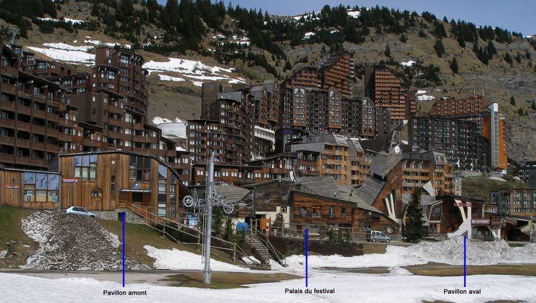 L'opération "Place centrale" est conçue par Pierre et Vacances (Gérard Brémond) , en accord avec la mairie de Morzine, pour devenir le coeur de la station d'Avoriaz grâce à la réalisation d'équipements publics et commerciaux jusque-là absents. Le coeur de l'opération comporte un bâtiment public à vocation d'accueil (le Palais du Festival) comprenant une salle de 350 places, l'office de tourisme et des locaux permettant de réaliser une annexe de la mairie, tandis que de part et d'autre, les deux autres bâtiments sont aménagés en galeries marchandes. Le projet est étudié en 1982 dans son ensemble par Jacques Labro, qui le conçoit d'emblée comme un repère visuel pour la station tout en préservant les perspectives ouverte entre l'espace skié et l'espace habité du quartier des Crozats. Jacques Labro envisage dès le premier projet une succession d'espaces publics et commerciaux, alternant des espaces couverts et des espaces en plein air. Le premier projet prévoit de relier le Palais du Festival au pavillon aval de la galerie marchande, proposant deux bâtiments réunis autour d'une place circulaire bordée par des galeries couvertes et surmontée par une galerie supérieure reliant les deux édifices dans laquelle était prévue l'annexe de la mairie. Le second projet, étudié en 1984, dissocie le Palais du Festival de la galerie marchande, tout en délimitant une place haute traitée en deux parties aux orientations différentes, d'un côté le parvis public ouvert sur les commerces et l'office du tourisme, et de l'autre une cour protégée formant terrasse commerciale au pied du clocher et une place basse, la place centrale, vouée aux animations festives et commerciales en plein air. Cette opération témoigne par ailleurs du retour des principes originels d'architecture de la station, caractérisés notamment par une création attachée à chaque situation topographique et paysagère. L'opération "place centrale" offre à la vue de tous ce contraste entre l'approche nouvelle annoncée et les réalisations édifiées au cours de la décennie précédente au quartier des Crozats.
