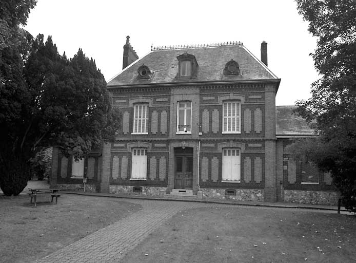 la maison, implantée en milieu de parcelle est construite en brique sur soubassement de silex. Le corps principal a un étage carré et un étage de comble. Le toit à longs pans à croupe est couvert en ardoise. Le faîtage est orné d'une dentelle métallique et d'épis de faîtage. Deux occulus et une lucarne à fronton cintré éclairent les combles.. La corniche à denticules est en brique grise. La façade principale est en brique rouge, les chaînes d'angles, le fronton central et les baies sont en brique grise. Deux ailes prolongent le corps principal, en rez-de-chaussée et comble à surcroît couvert d'un toit à croupe. La remise dans le jardin est de construction analogue.