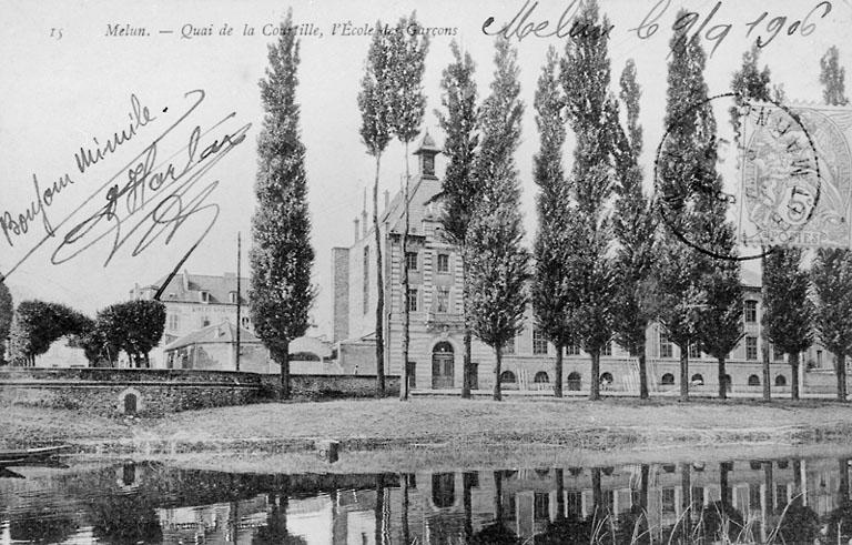 En 1884, la Ville de Melun achète une propriété située entre la rue du Franc-Mûrier et le quai de la Courtille, pour y construire une école de garçons remplaçant celle de la rue des Potiers, jugée trop petite et insalubre. Le concours organisé en 1888 est remporté par Georges Guyon, architecte à Saint-Maurice. Mais l'édifice est réalisé selon le cahier des charges de Touzet et Trintzius, architectes à Rouen et second prix du concours, de 1888 à 1892. L'édifice reçoit une extension en 1952, sur les plans des architectes Paupe et Leroux. L'école de la Courtille accueille aujourd'hui des cours universitaires (faculté de droit Paris-Assas).